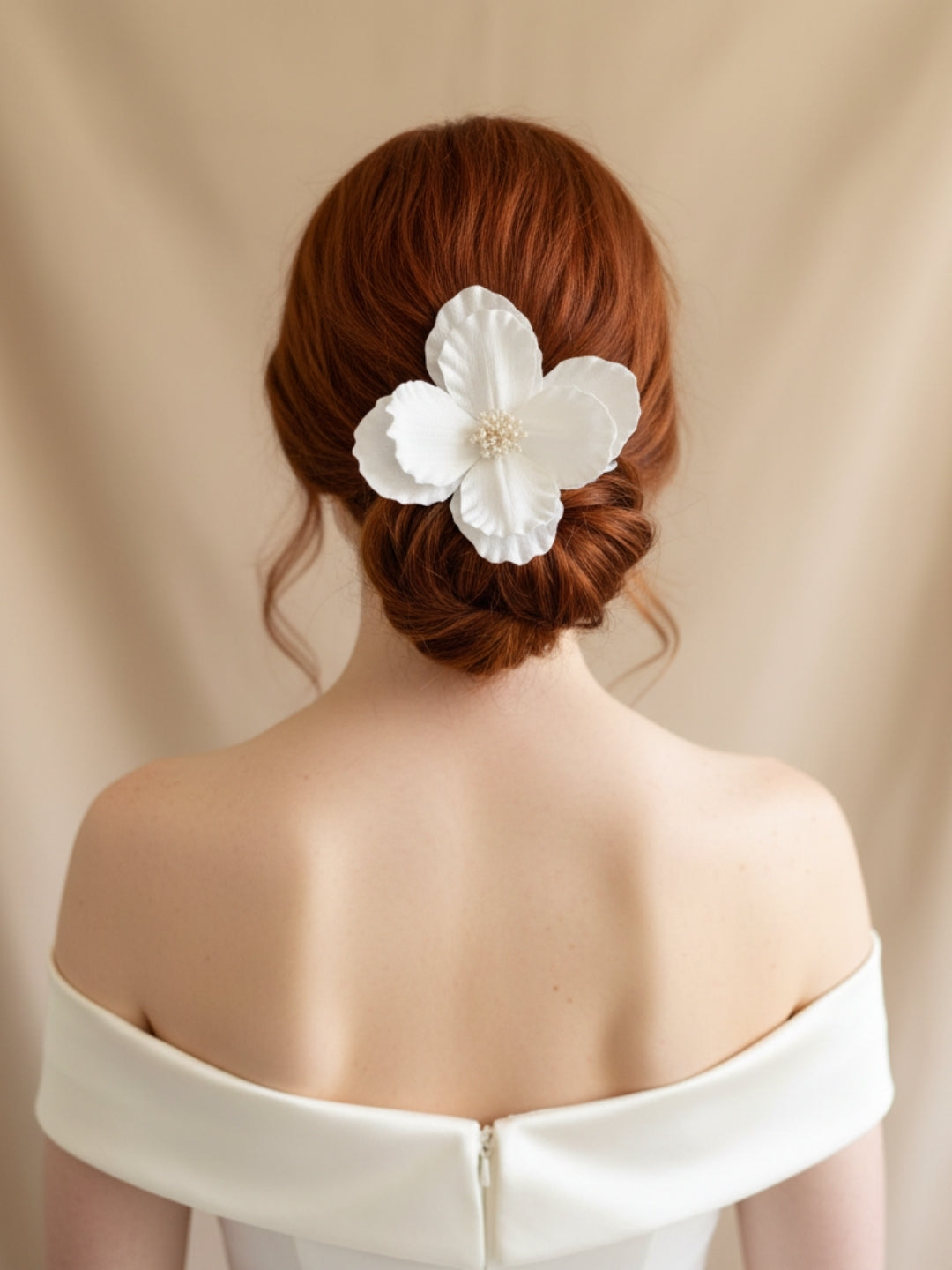 El işçiliğiyle hazırlanan kumaş çiçek detaylı saç aksesuarı; Gelinler, davetler ve özel günlerde saç stiline zarif ve romantik bir dokunuş katmak için tasarlanmıştır.