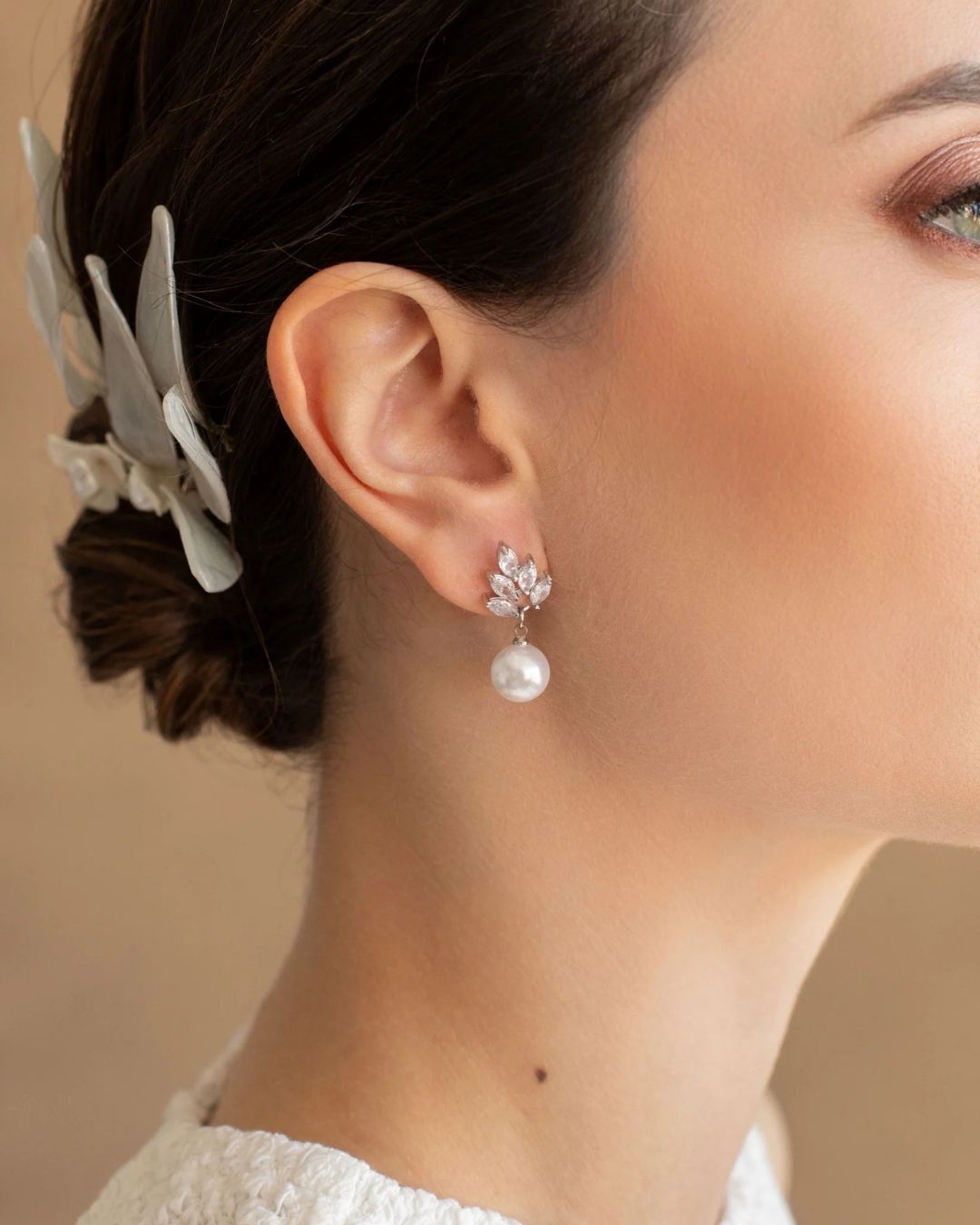 Zirkon Yaprak Taş İnci Küpe